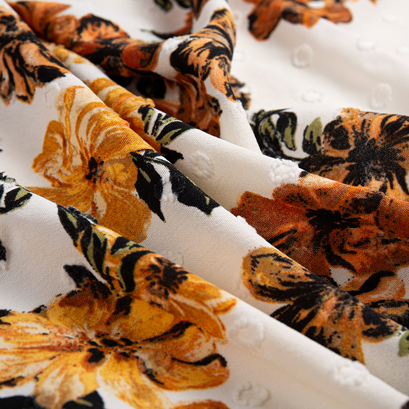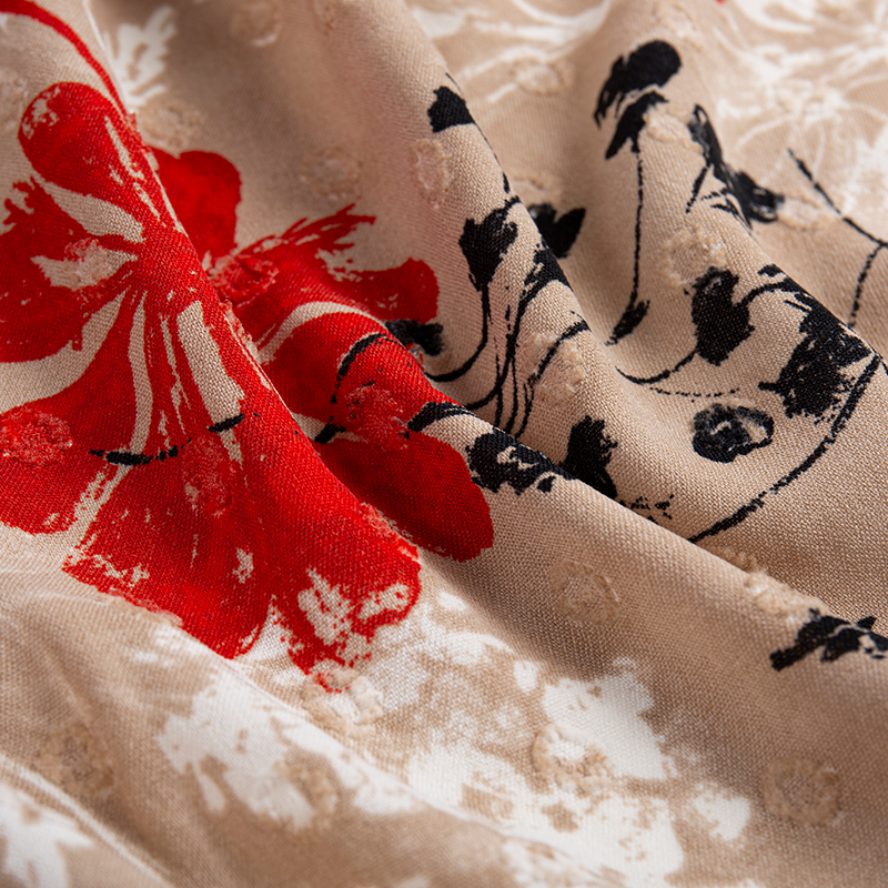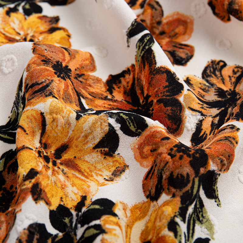 | 2-12 | 100% Polyester | 180D+150D*180D large jacquard | 210GSM | 57/58 | Dyeing, printing, embroidery, wrinkling, hot stamping, drip molding, etc. | Men's and women's fashion, dresses, culottes, shirts, home textiles, etc. |